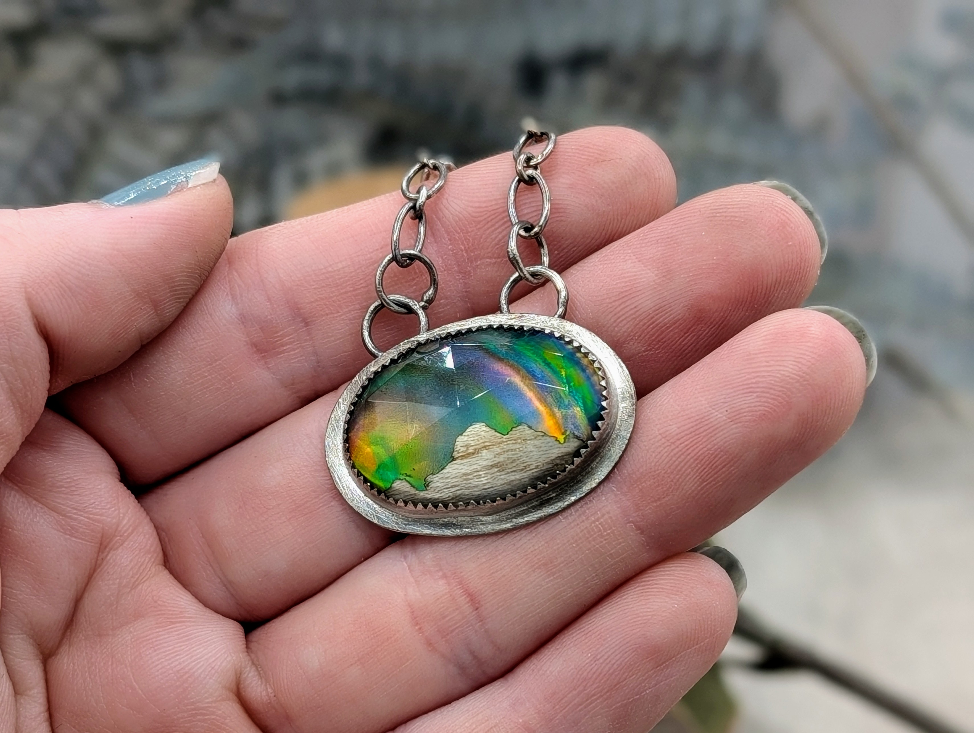 925er Sterlingsilber, handgemachter Aurora Opal.