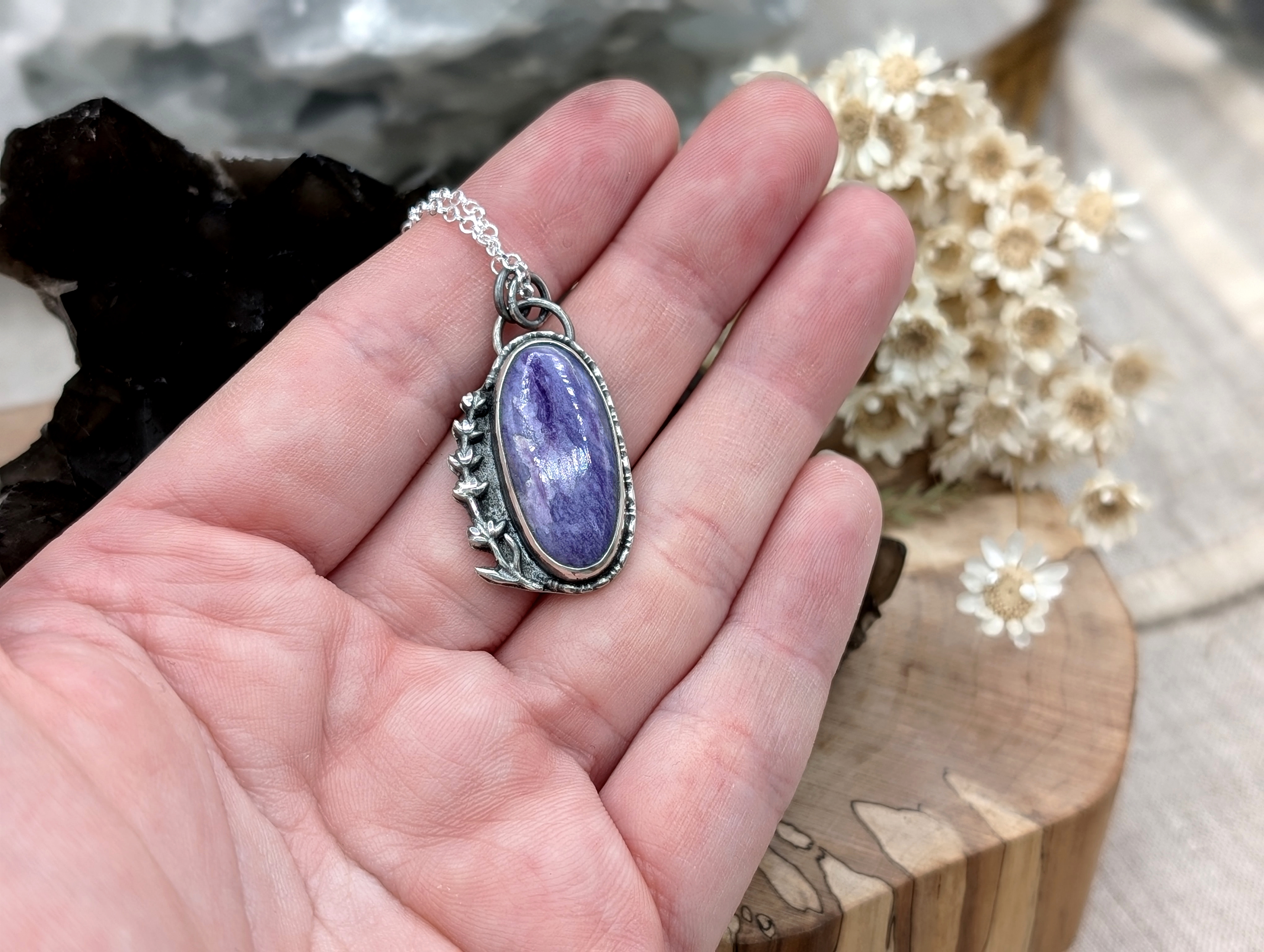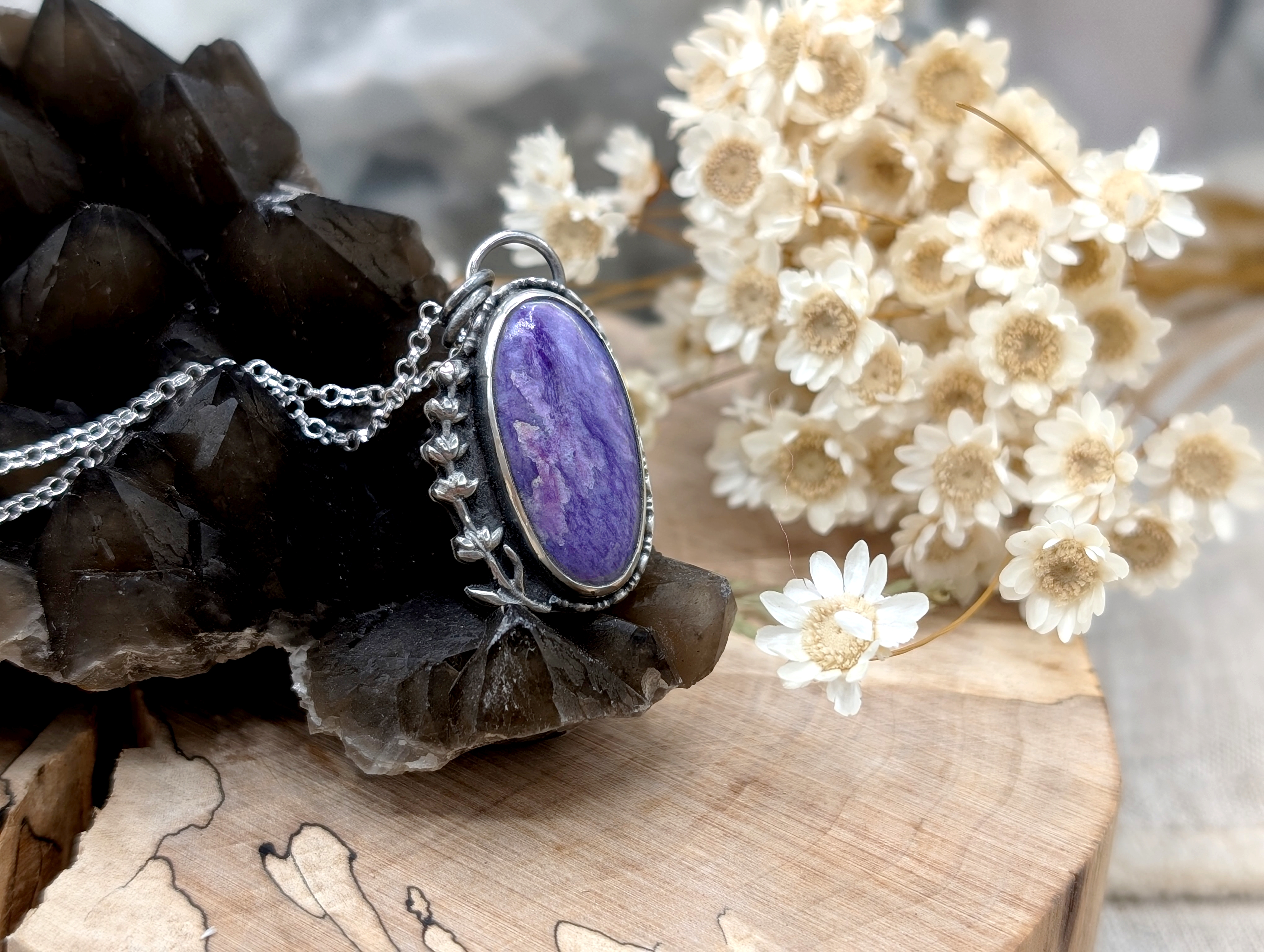 Halskette aus Sterlingsilber mit Charoit