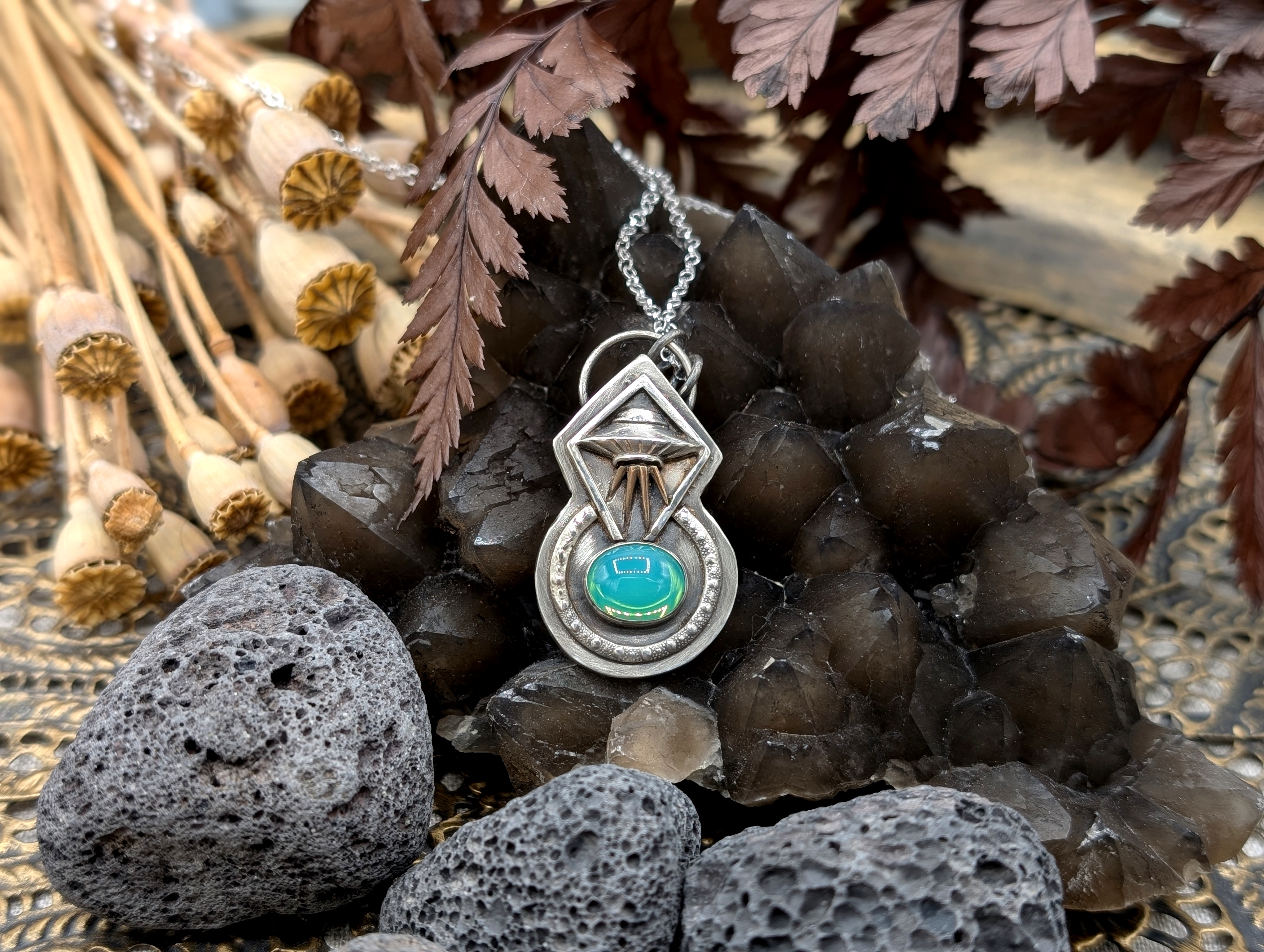 Halskette aus Sterlingsilber mit Vintage Uranglas