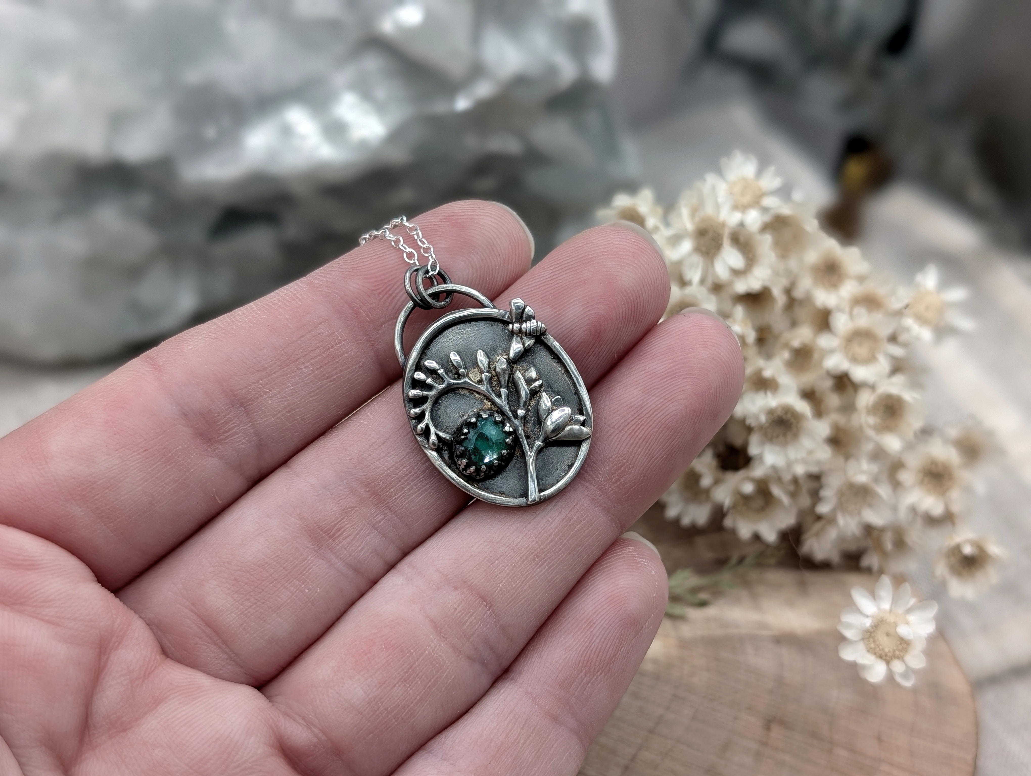 Halskette aus Sterlingsilber mit sambischem Smaragd