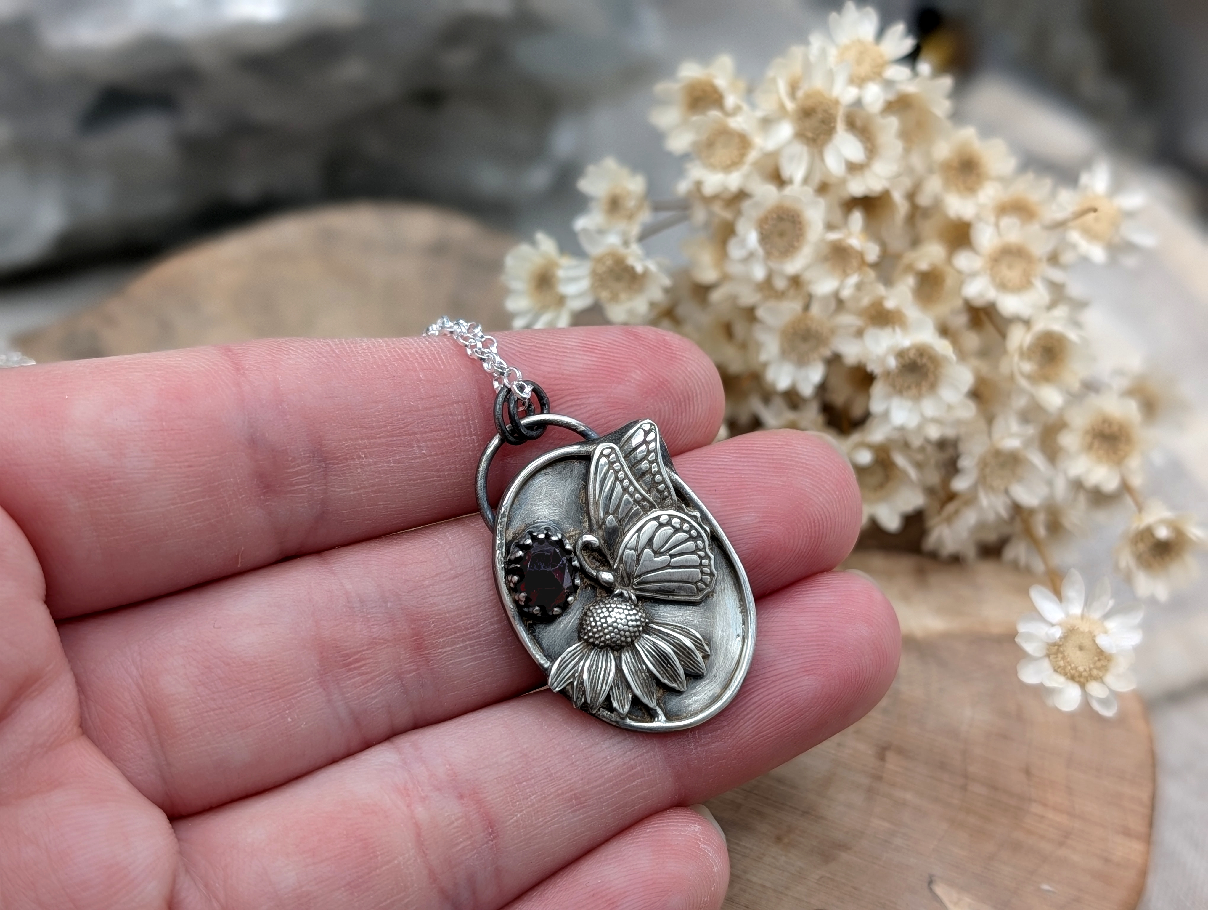925er Sterlingsilber, roter Spinell.