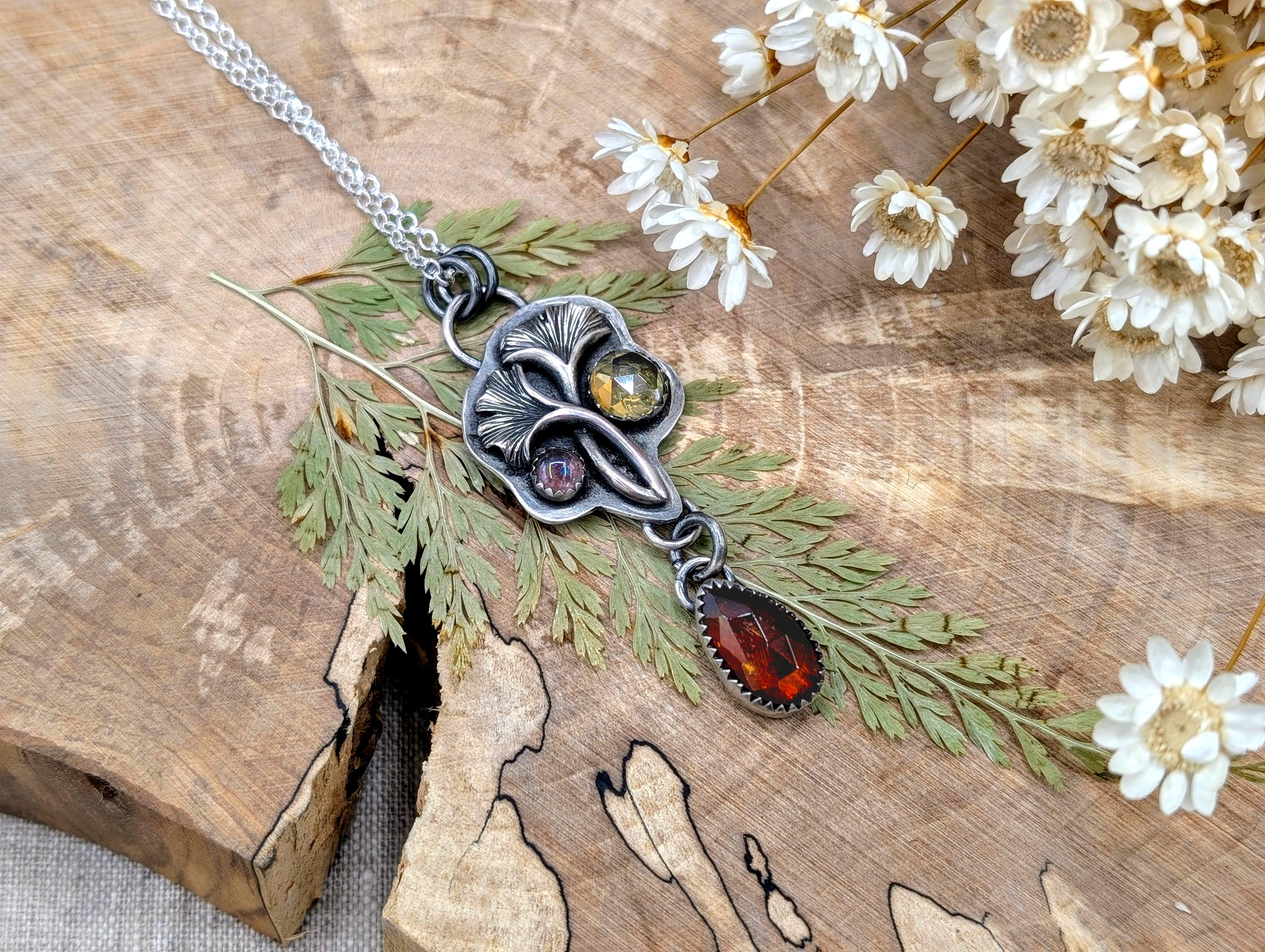 925er Sterlingsilber, orangener Kyanit, Citrin und Erdbeerquarz.