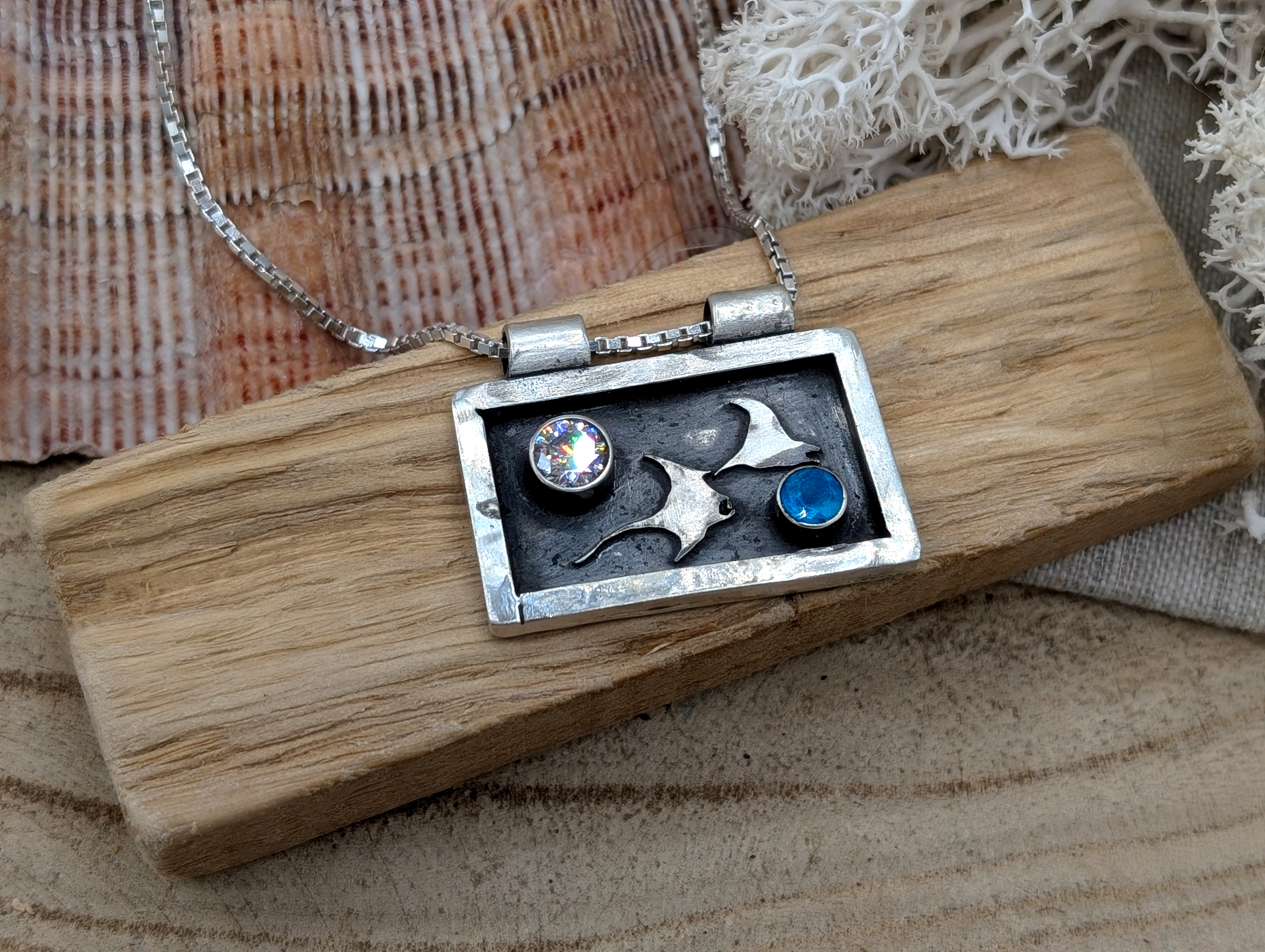 Halskette aus Sterlingsilber mit Moissanit und Neon Apatit