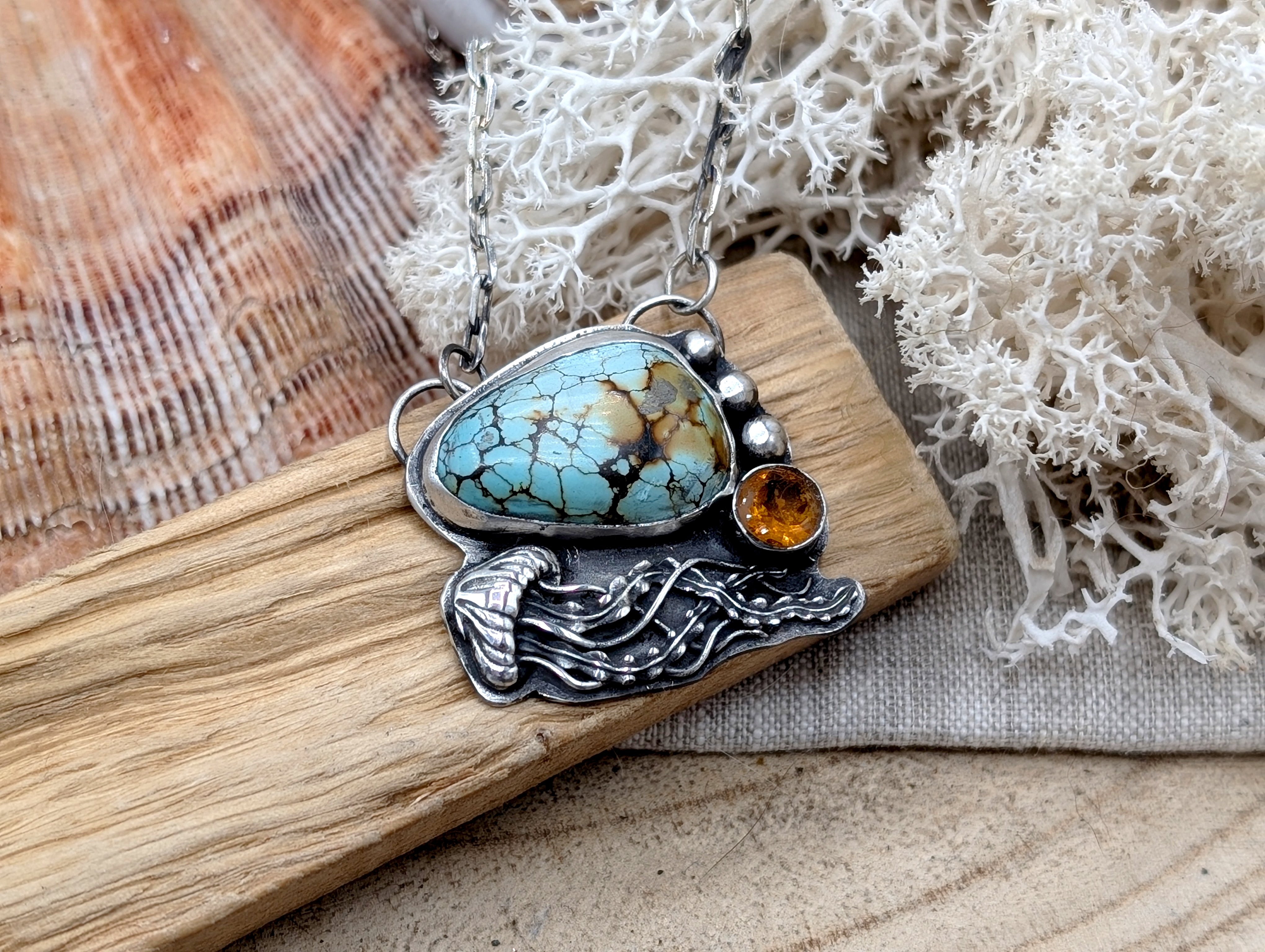 Halskette aus Sterlingsilber mit Bamboo Mountain Türkis und Citrin
