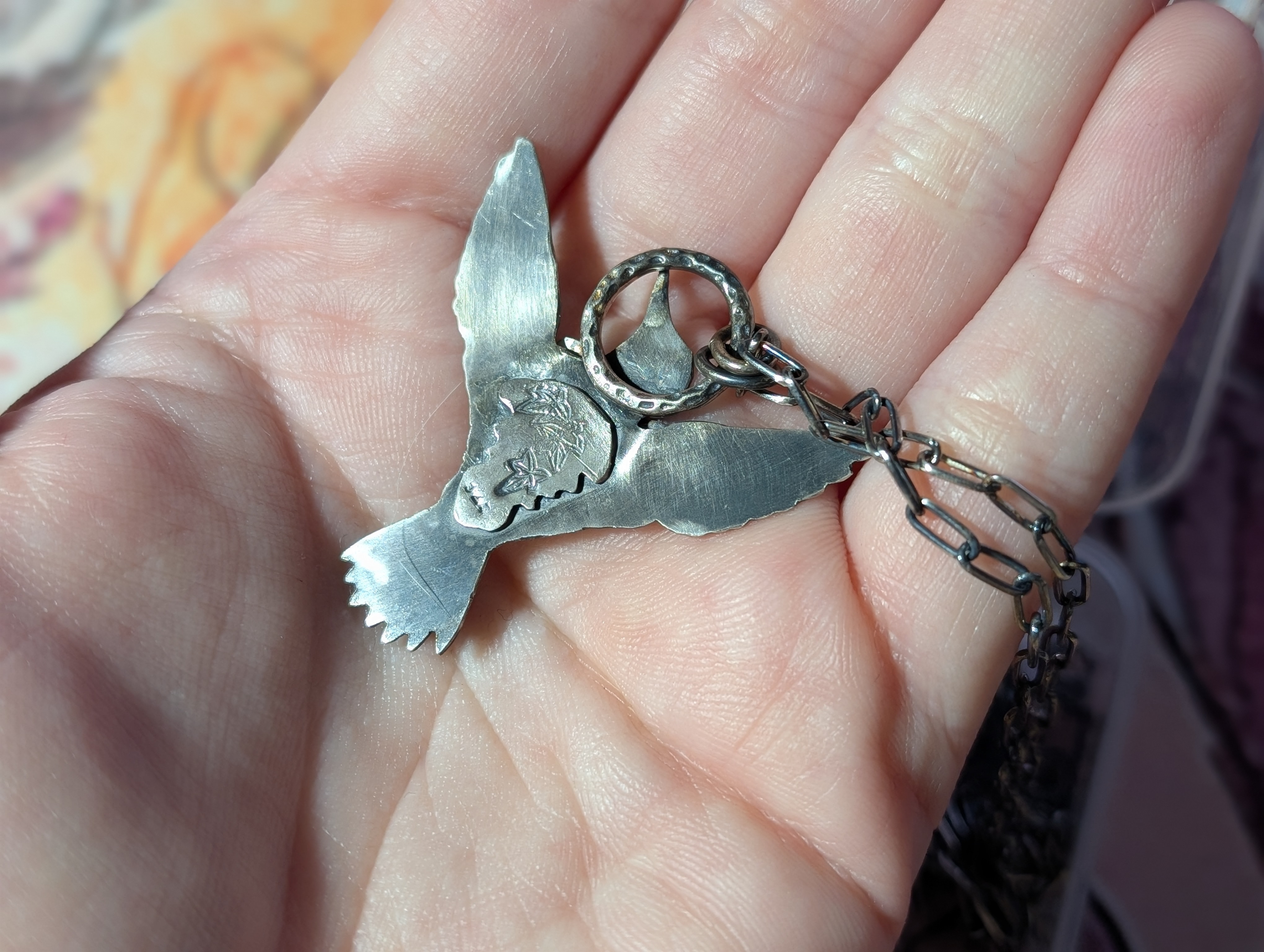 Die Kette ist von Hand gemacht, ca. 50 cm lang und lässt sich kürzer einstellen.