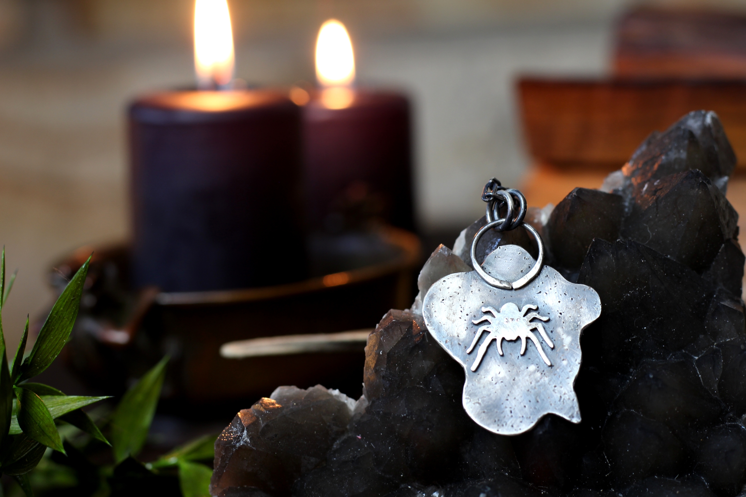 Rabenschädel aus 925er Sterlingsilber mit Herkimer Diamant und äthiopischem Opal.