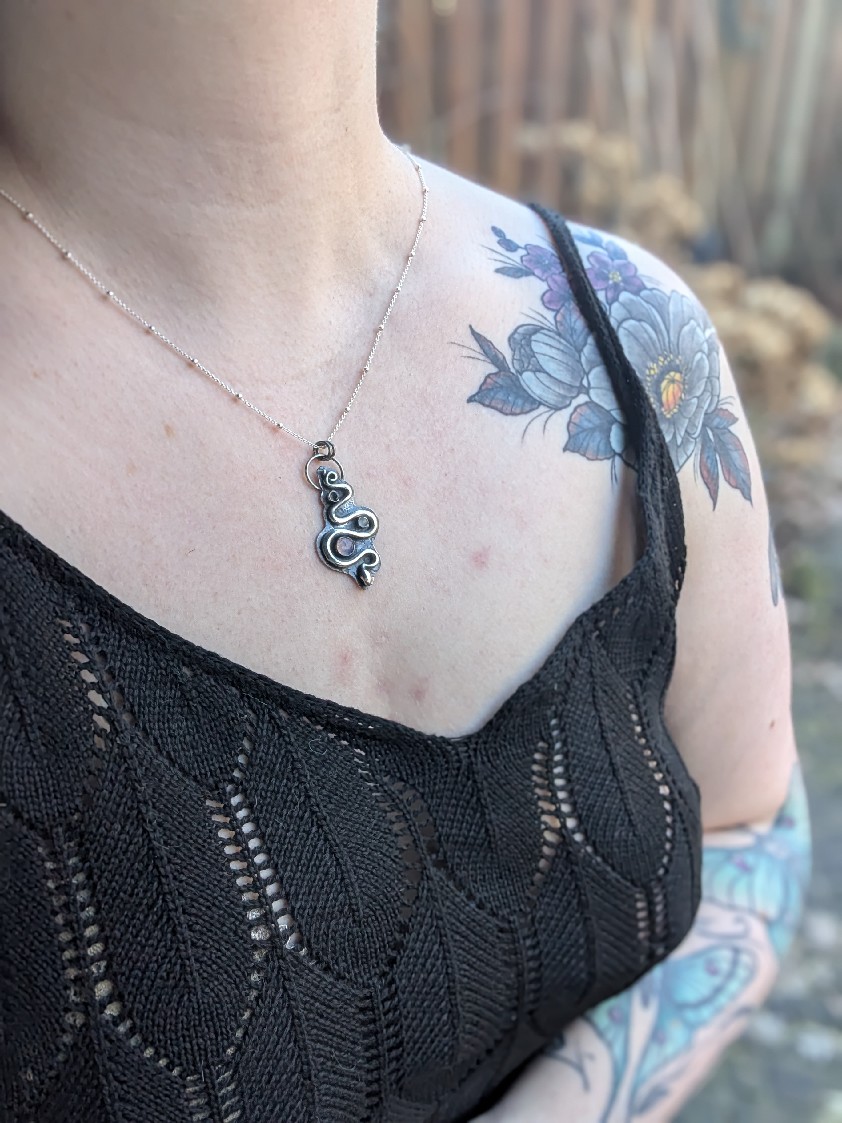 Wenn du keinen anderen Wunsch äußerst, kommt der Anhänger an einer Bambus-Kette aus Sterlingsilber mit 50 cm Länge. Auf dem letzten Bild siehst du aber auch ein paar Alternativen, falls du andere Kettenglieder oder eine andere Länge bevorzugst.