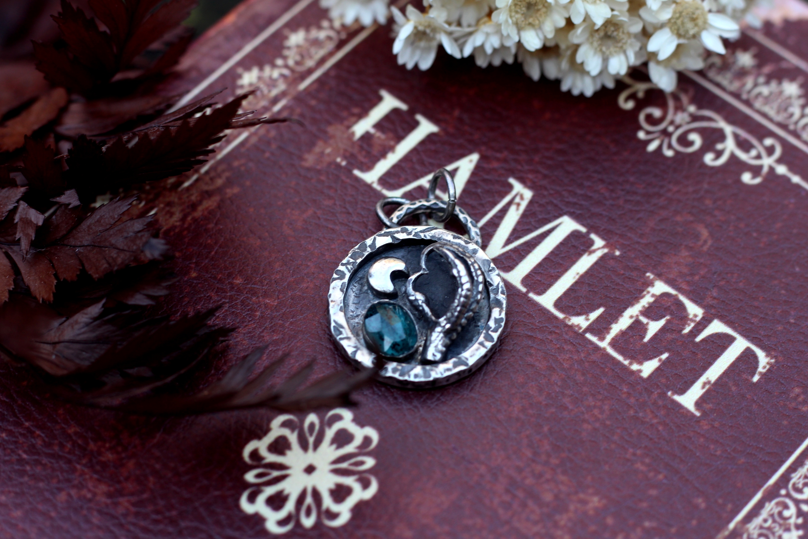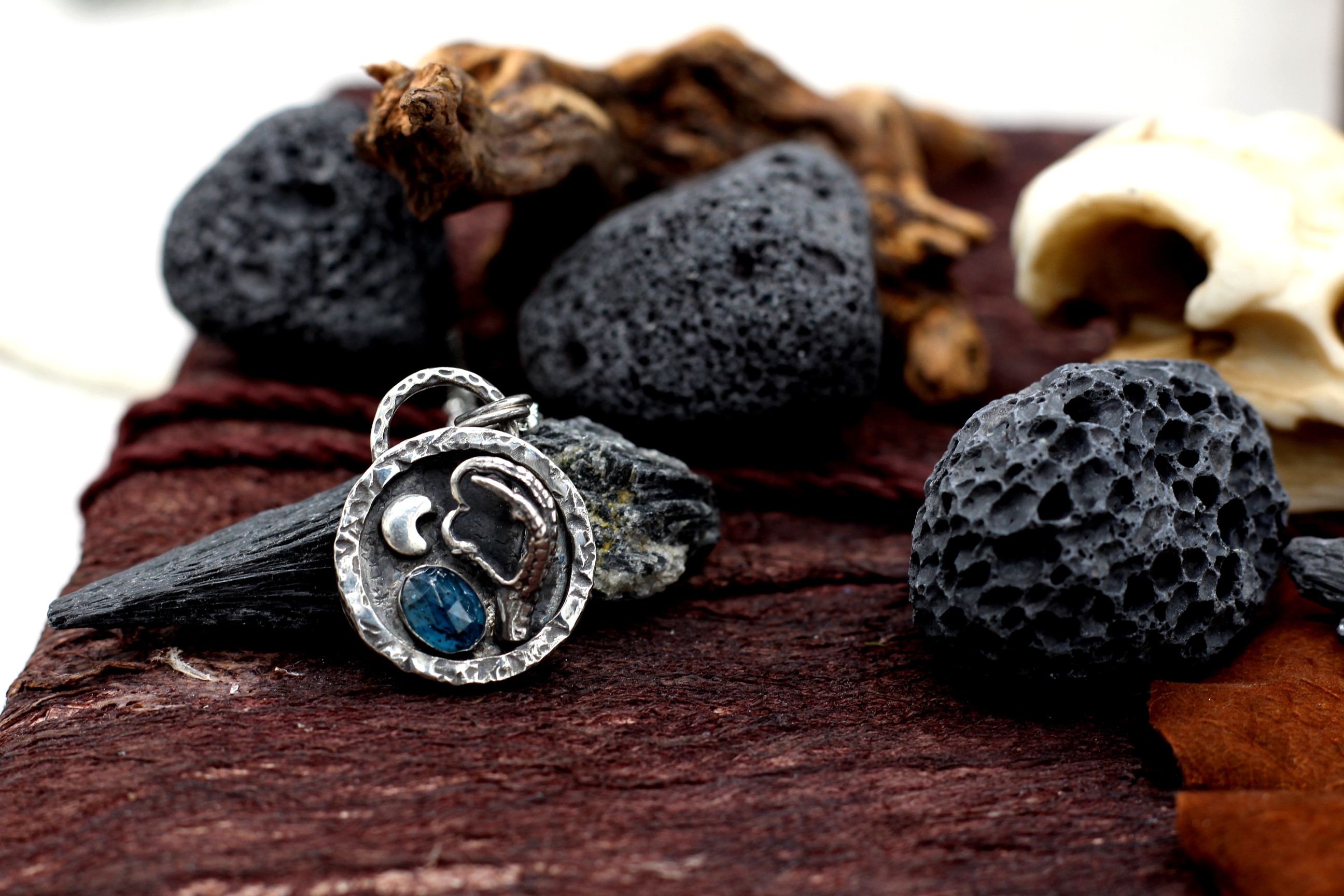 Wenn du keinen anderen Wunsch äußerst, kommt der Anhänger an einer Bambus-Kette aus Sterlingsilber mit 50 cm Länge. Auf dem letzten Bild siehst du aber auch ein paar Alternativen, falls du andere Kettenglieder oder eine andere Länge bevorzugst.