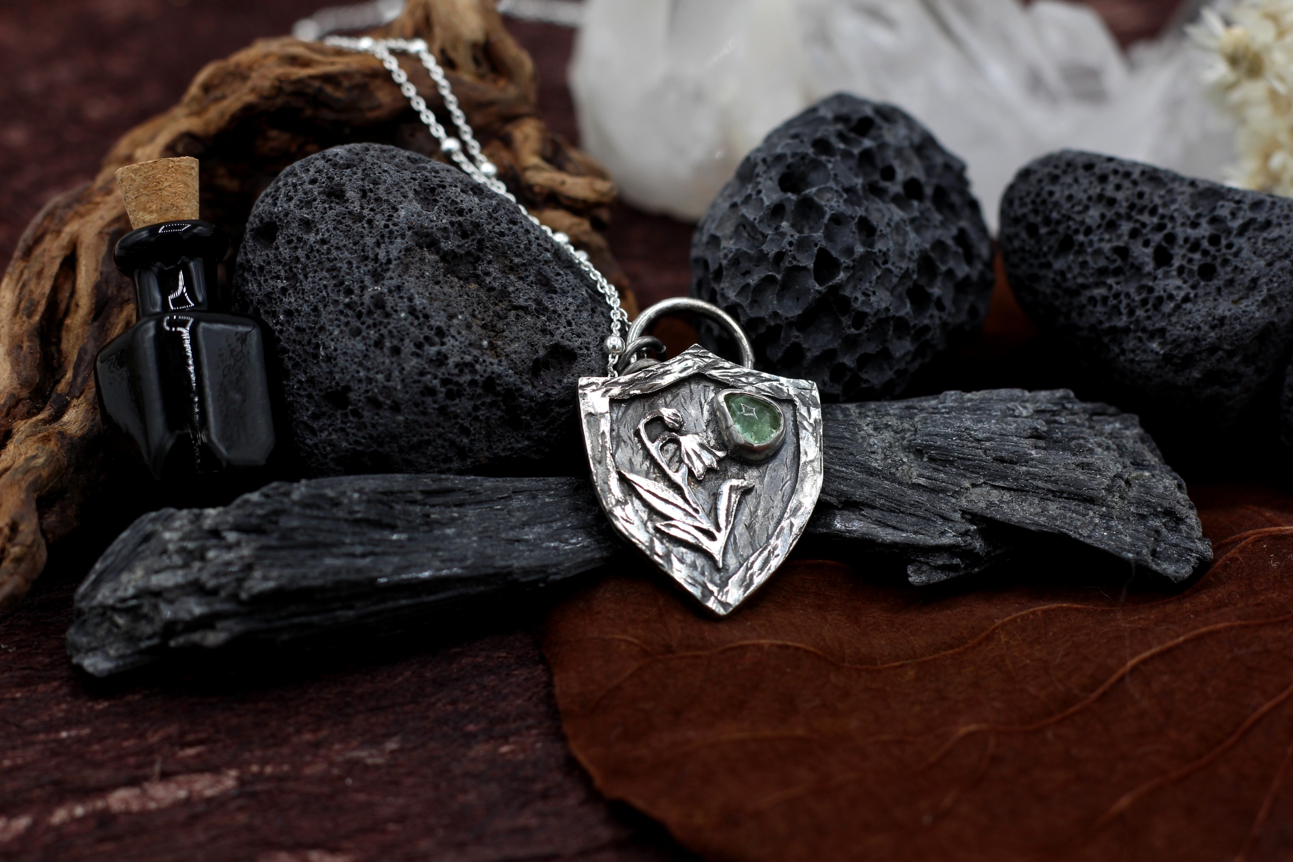 Wenn du keinen anderen Wunsch äußerst, kommt der Anhänger an einer Bambus-Kette aus Sterlingsilber mit 50 cm Länge. Auf dem letzten Bild siehst du aber auch ein paar Alternativen, falls du andere Kettenglieder oder eine andere Länge bevorzugst.