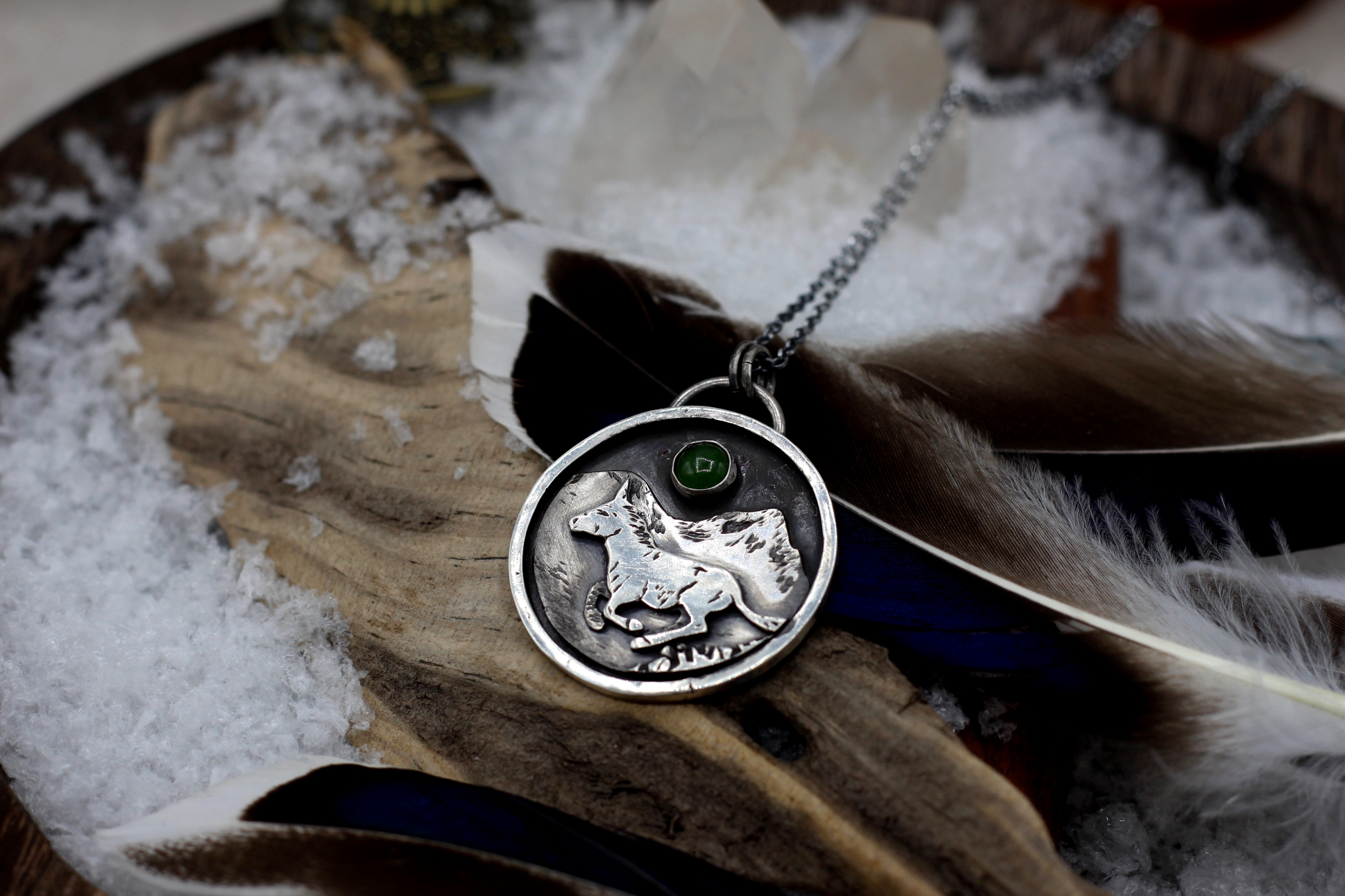 Halskette aus Sterlingsilber mit Nephrit