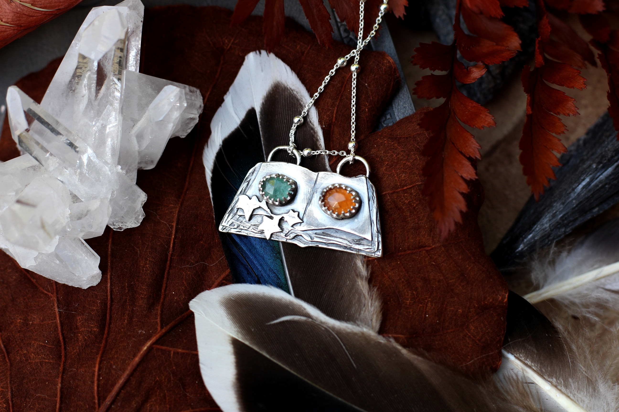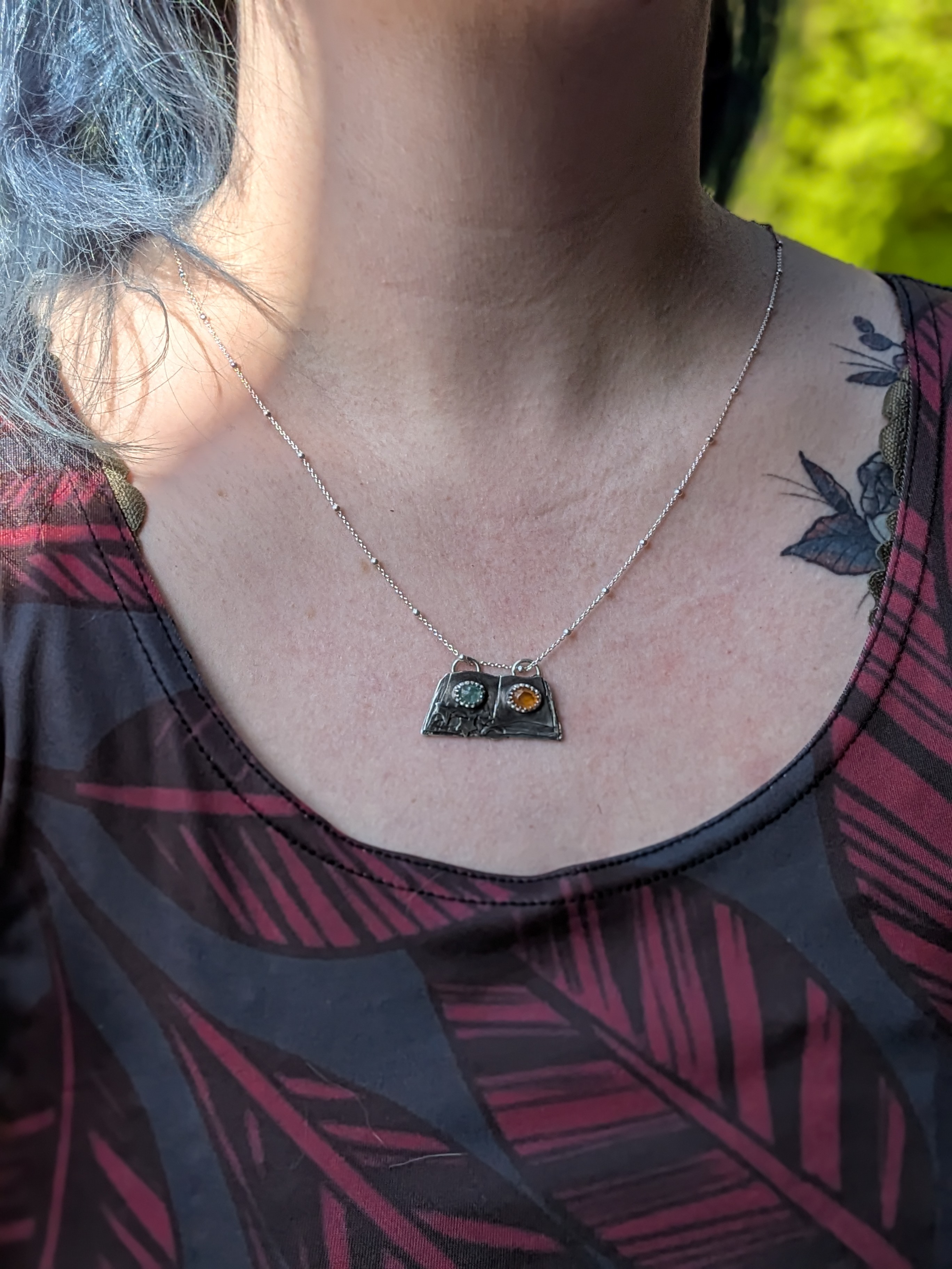 Halskette aus Sterlingsilber mit Apatit und Fanta Granat