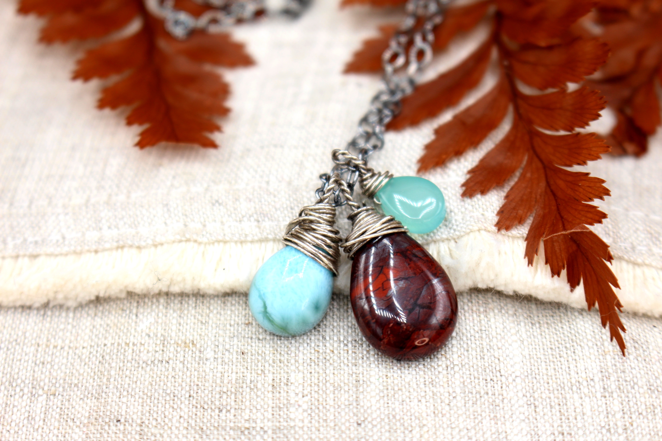 Halskette aus Sterlingsilber mit Jaspis, Larimar und Chalcedon