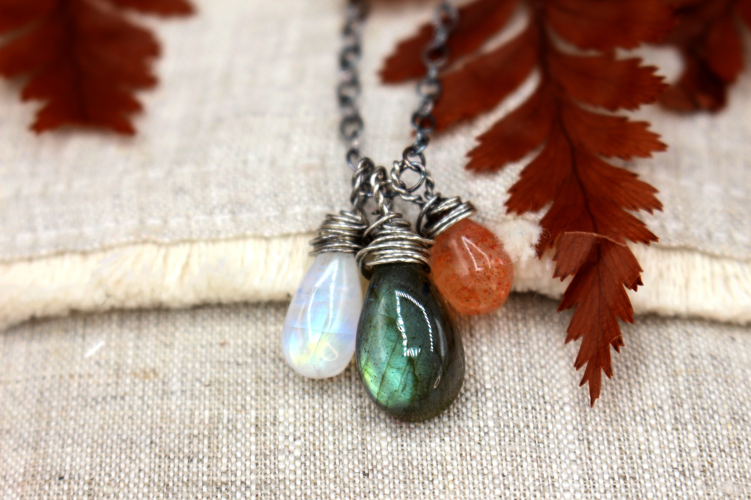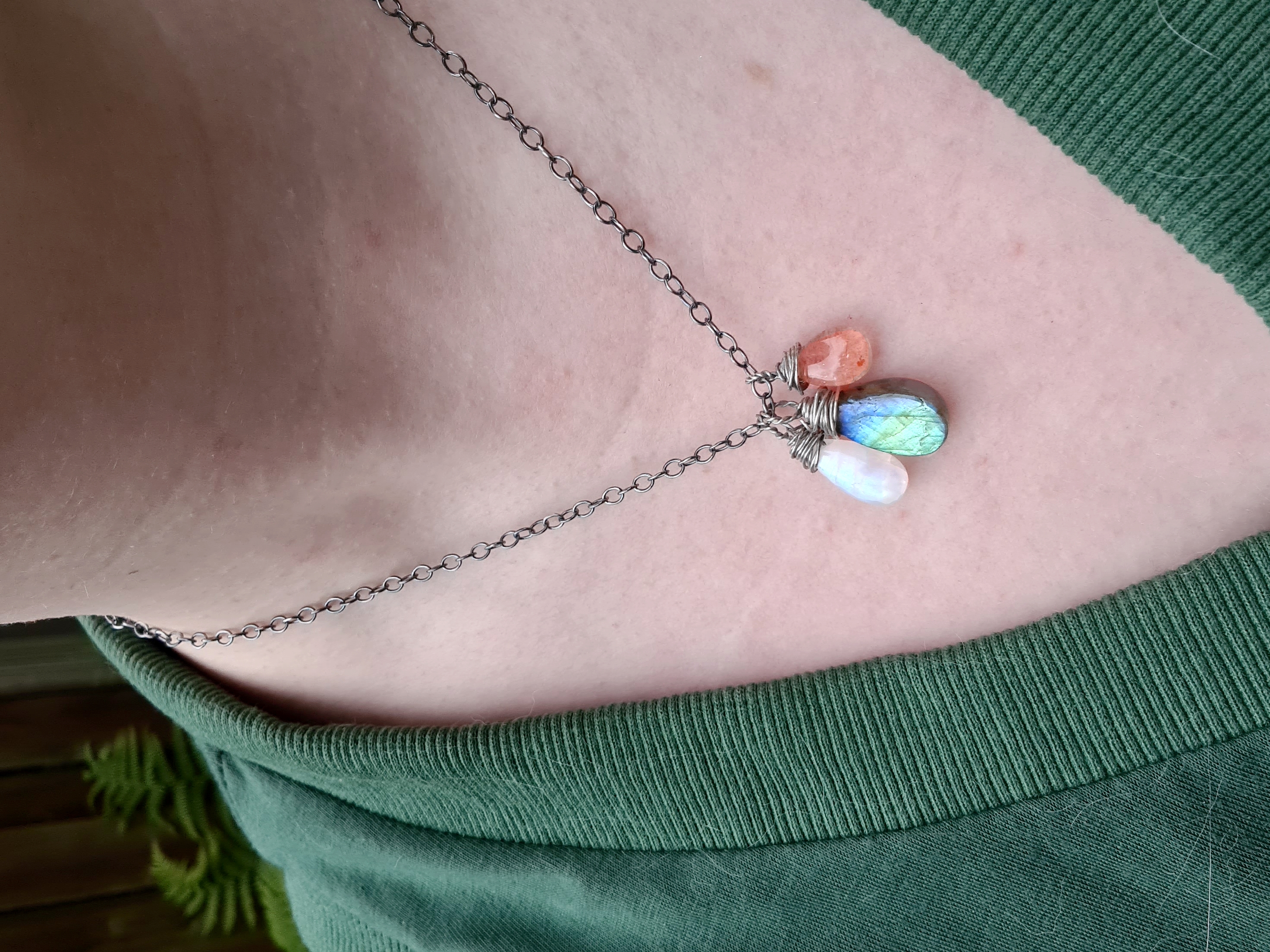 Halskette aus Sterlingsilber mit Labradorit und Sonnenstein