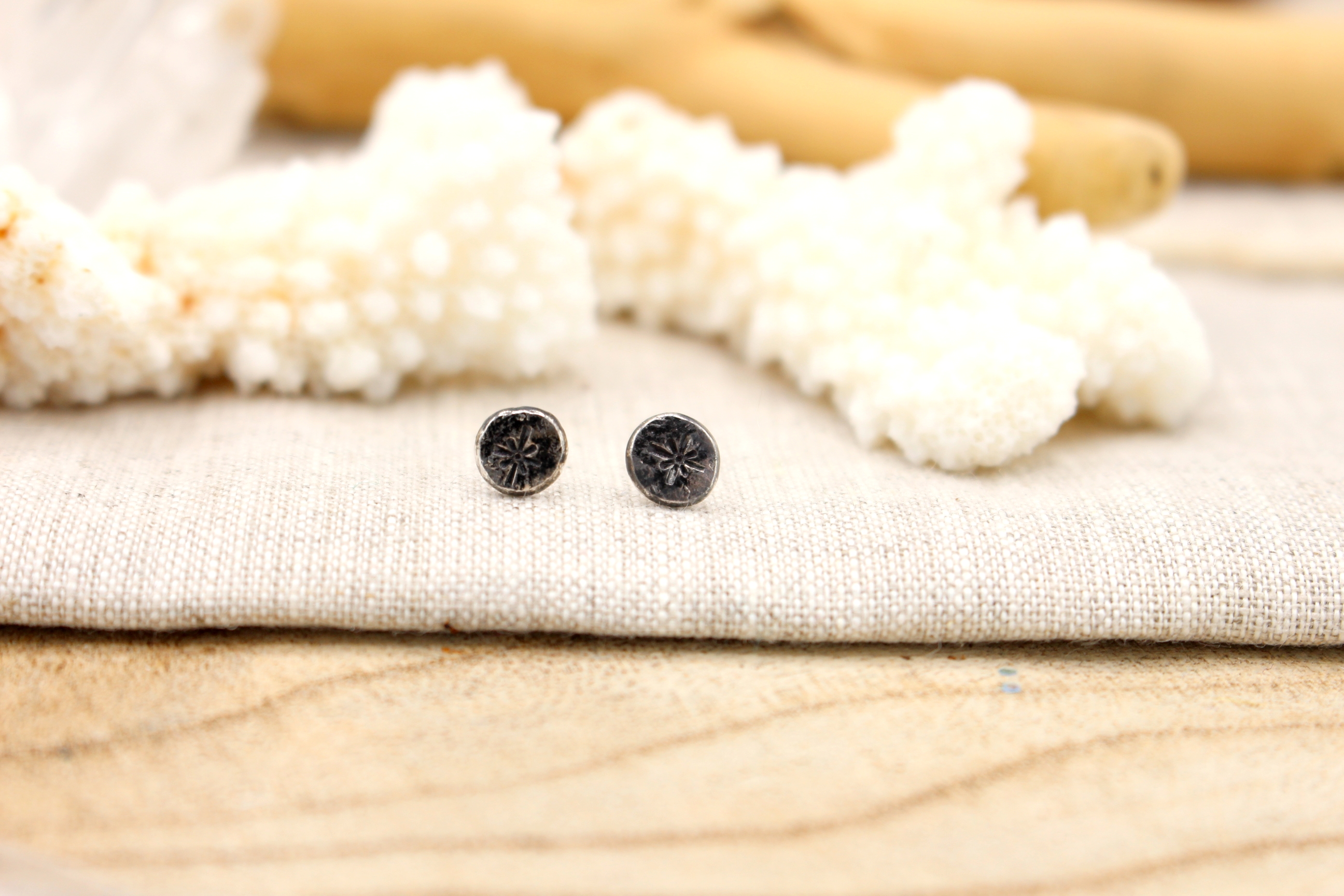 Winzige, handgeschmiedete und unregelmäßige Ohrstecker aus