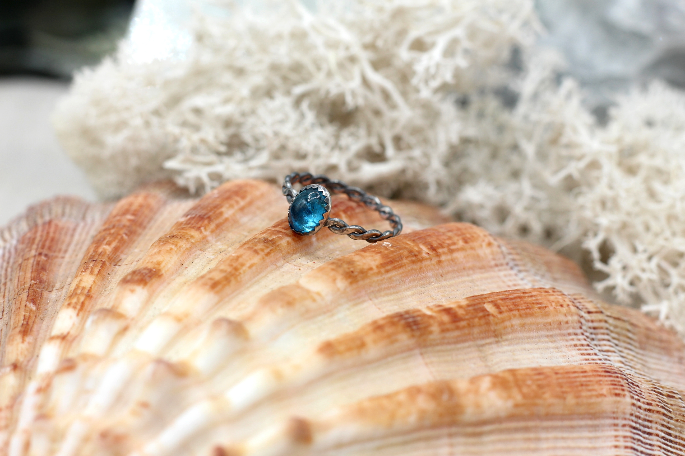 Ring aus 925er Sterlingsilber mit natürlichem Apatit, geschliffen von Selma aus Pakistan (Karim Gems). Die Ringschiene hat ein wunderschönes Wellen- oder Zopfmuster und ist von Hand geformt.