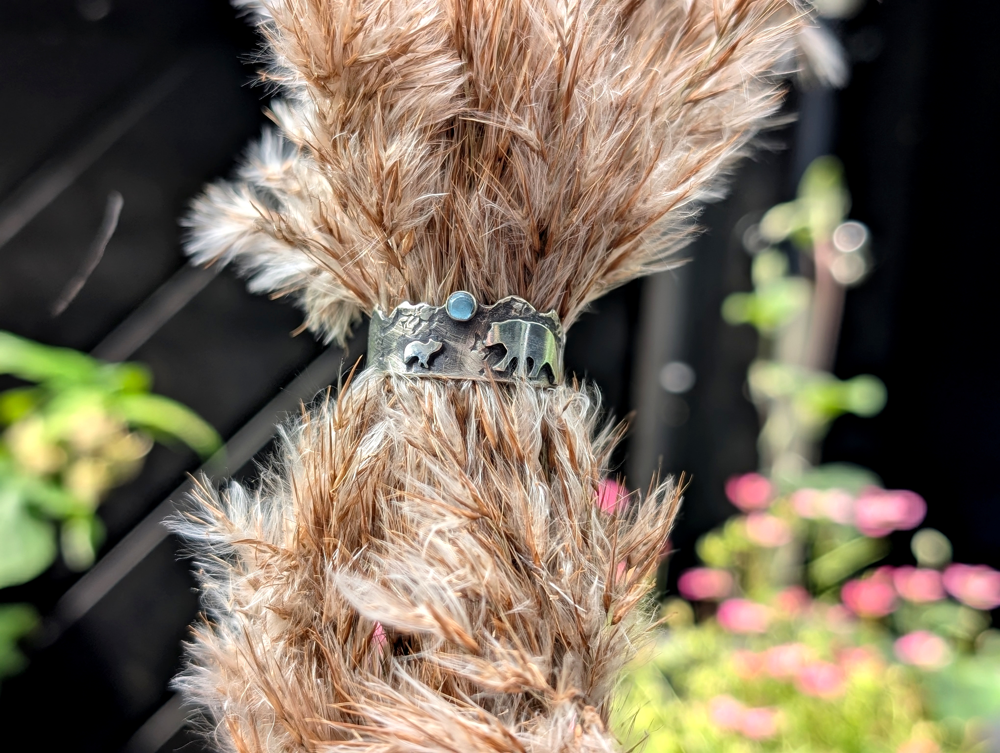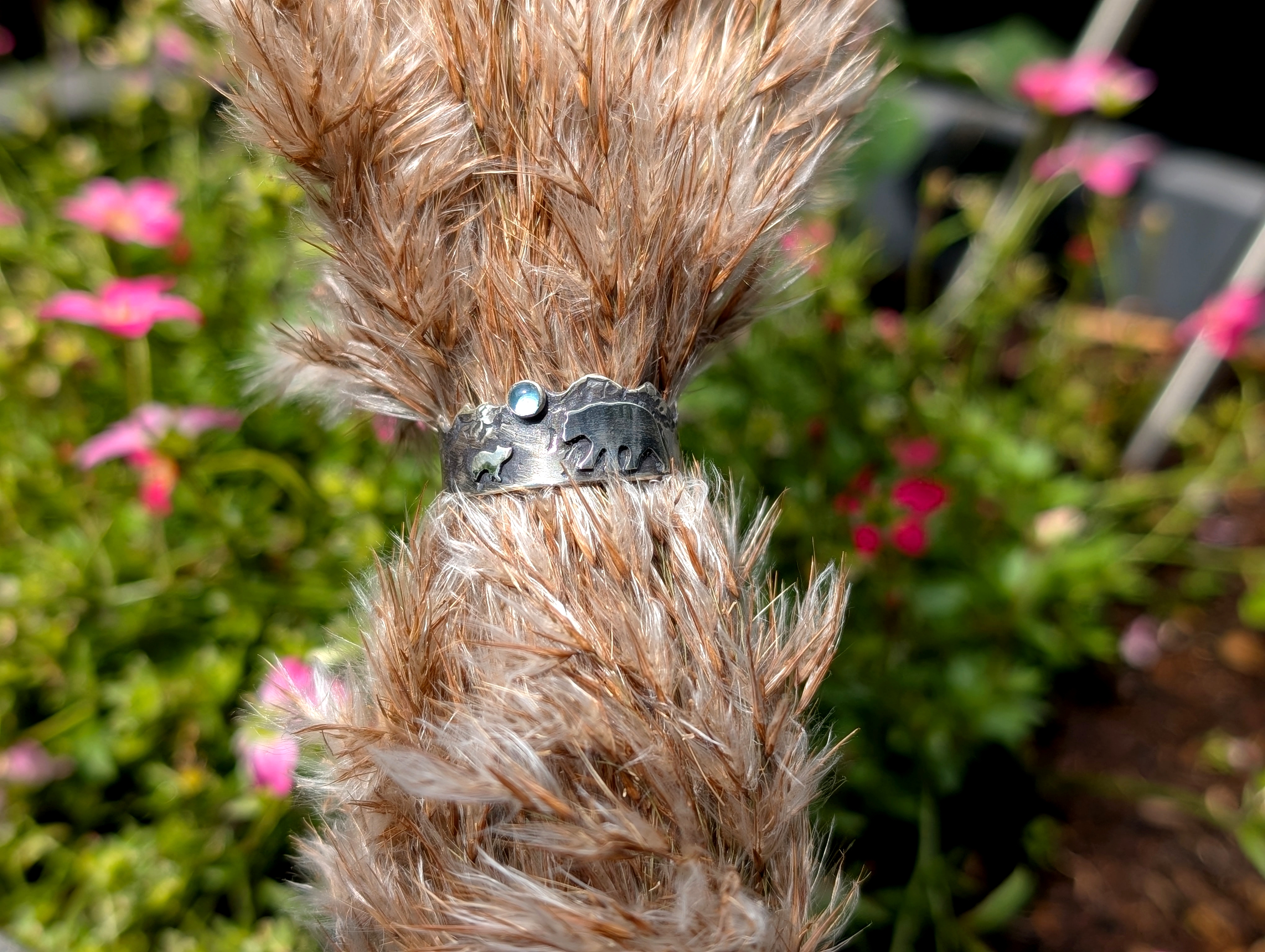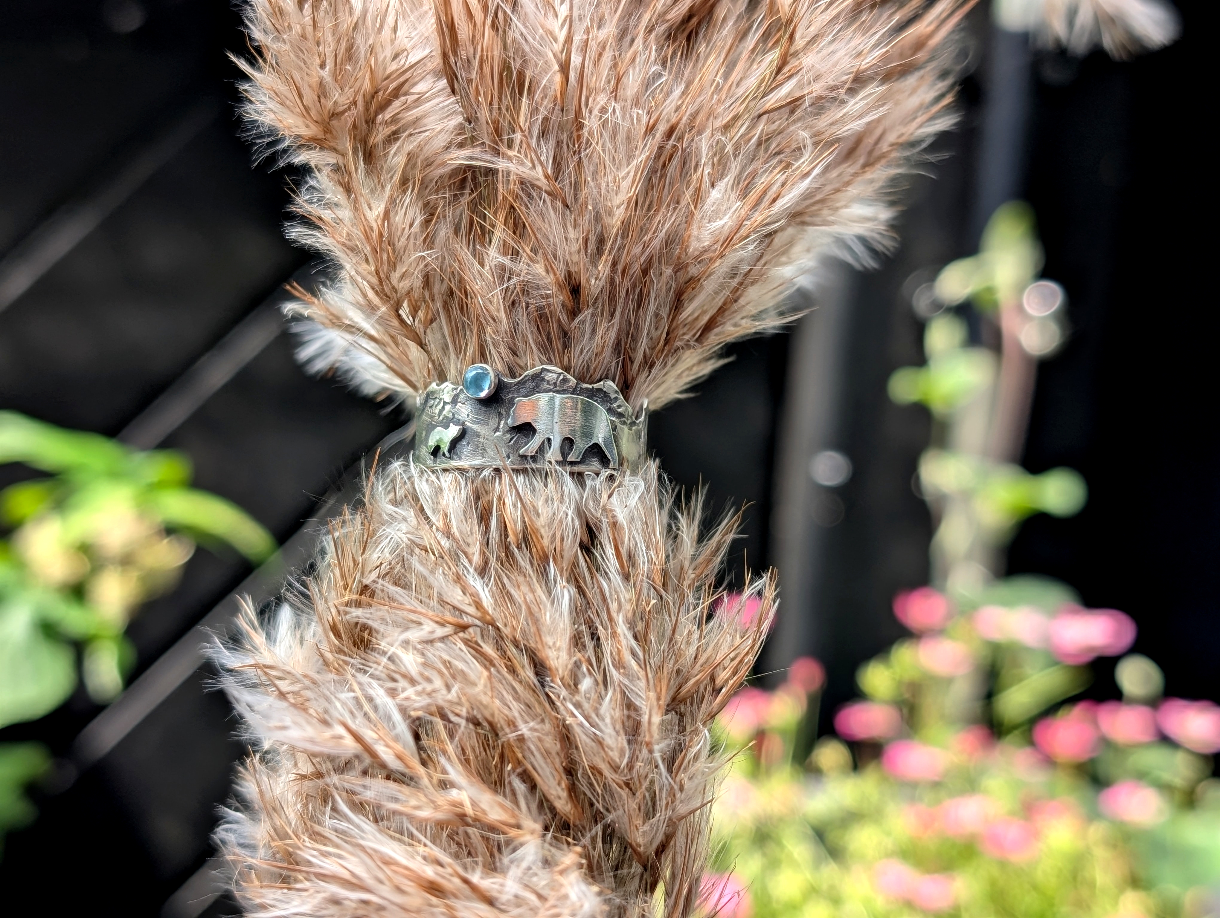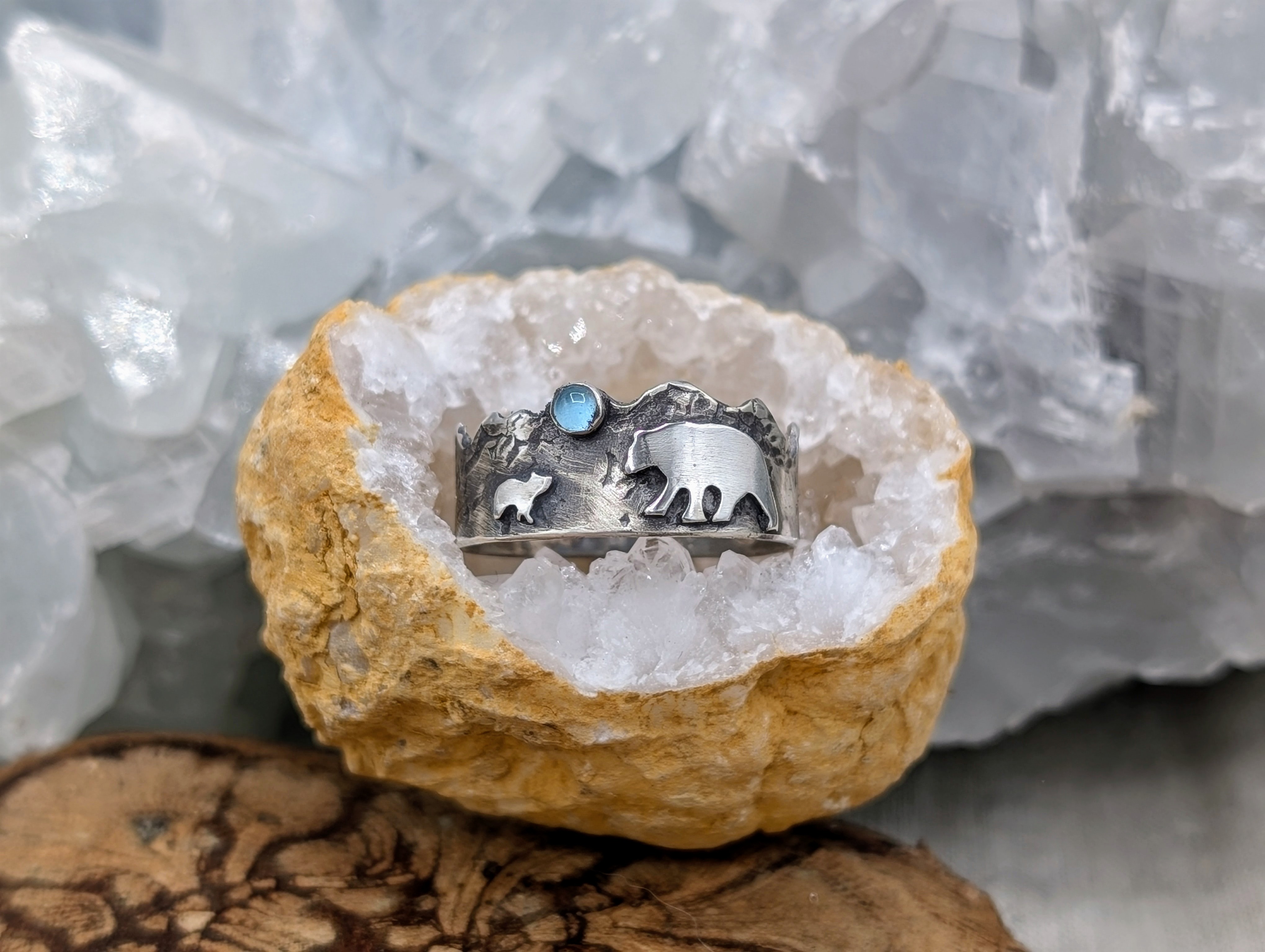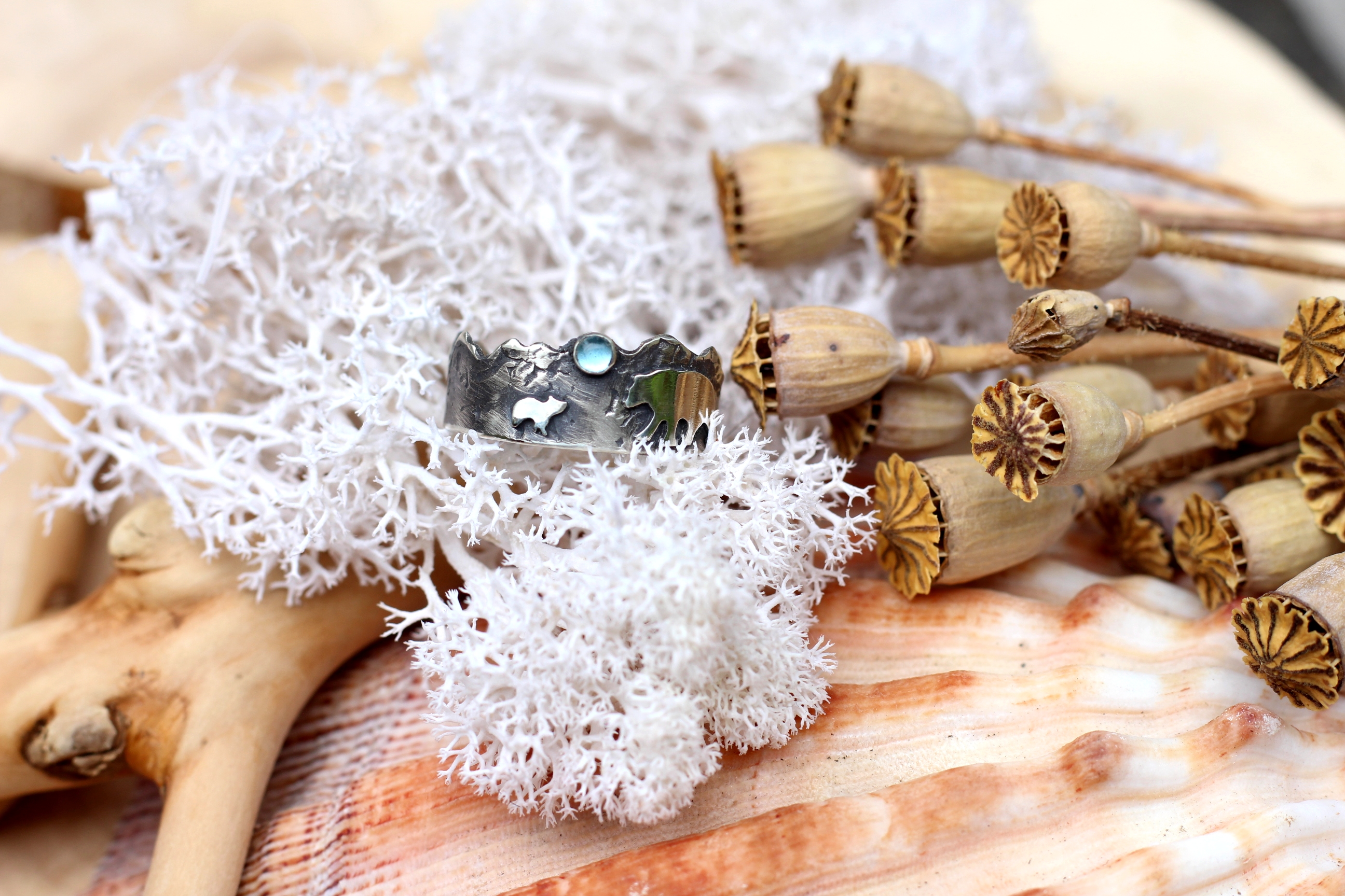 Ring aus 925er Sterlingsilber mit Topaz. Alle Teile sind handgesägt.