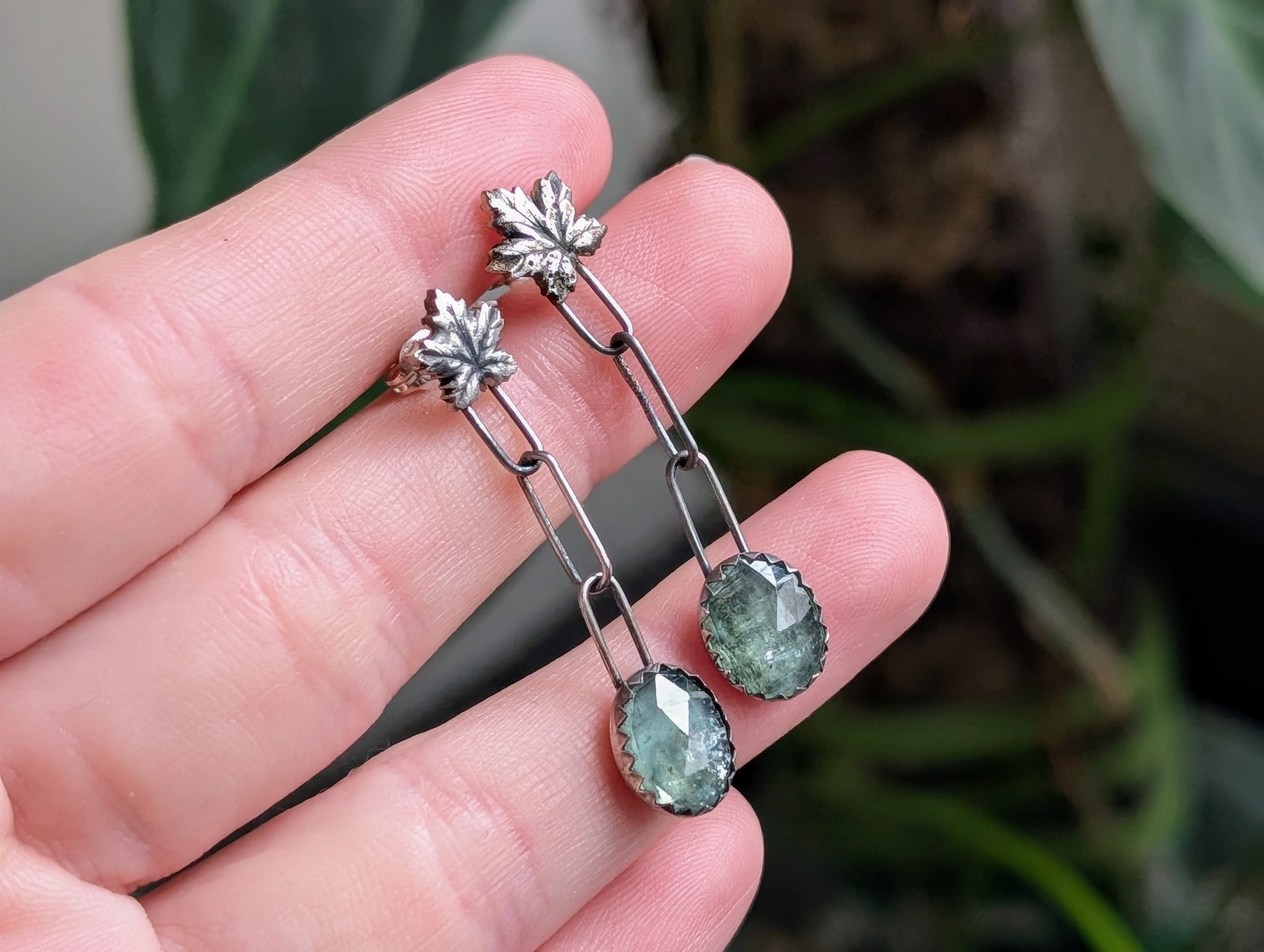 Die Ohrstecker können mit oder ohne die Steine an der Kette getragen werden. Kombiniert sind die Ohstecker insgesamt ca. 4,5 cm lang.